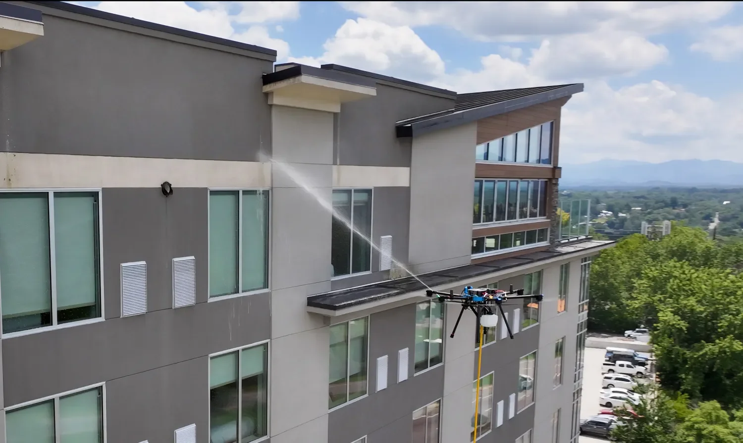 Revolutionize your building maintenance with SkyTech Cleaning Solutions' state-of-the-art drone technology. Our advanced drones are engineered to deliver precision cleaning for buildings, warehouses, windows, solar panels, and parking garages—efficiently and safely.